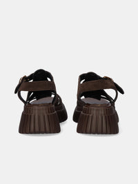 Markant, modern und absolut im Trend: Diese Plateau-Sandalen aus taupefarbenem Leder setzen ein klares Fashion-Statement. Die klobige Sohle verleiht dem Design einen angesagten, urbanen Look und sorgt gleichzeitig für angenehmen Tragekomfort.